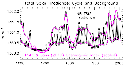 Figure 3 shows an increase in CI of about 2 W/m 2 from the Maunder minimum to the 1991 activity peak. This increase, together with the other solar "activity" variations modulate the earth’s temperature and albedo via the GR flux and varying cloud cover.